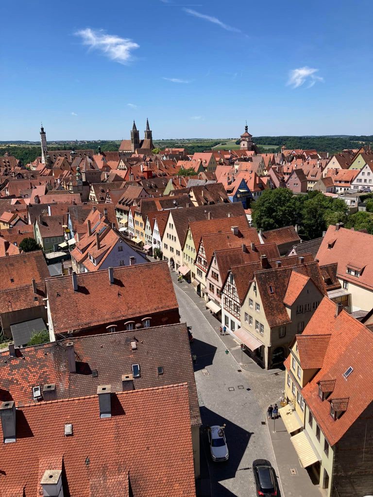 We did not spend the day at Wurzburg, however, instead we stepped back in time as we drove to what is considered the most preserved medieval town in Germany called Rothenberg. It is one of the few towns that had its medieval wall completely intact around it. You can walk on top of the wall all the way around the town, its about 1.5 miles and there are several great views of the ancient city. What set Rothenberg apart was it was known as an independent city, not having a Bishop Elector. They were the only truly Lutheran town we visited, part of this was to break away from the power of the bishops and be independent. The church pictured is St. James, the best saint, and is one of the few Lutheran Cathedrals I saw. They were also beer drinkers, something I have learned is really what separates the people, especially the Bavarians from the wine drinking Franconians.